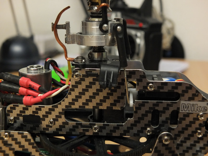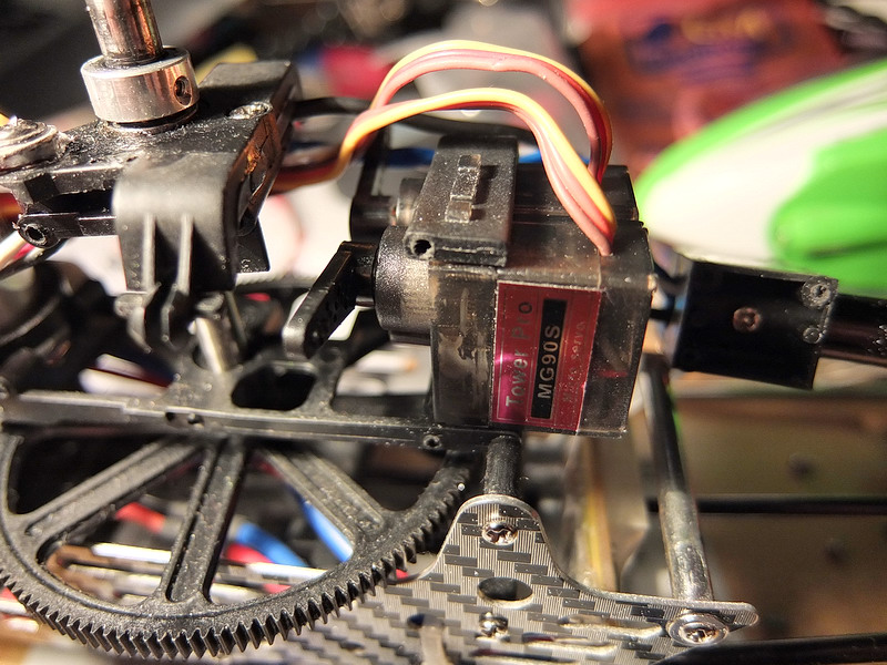 A tady je verze s otočeným ovládáním cykliky. Zadní servo posazeno o