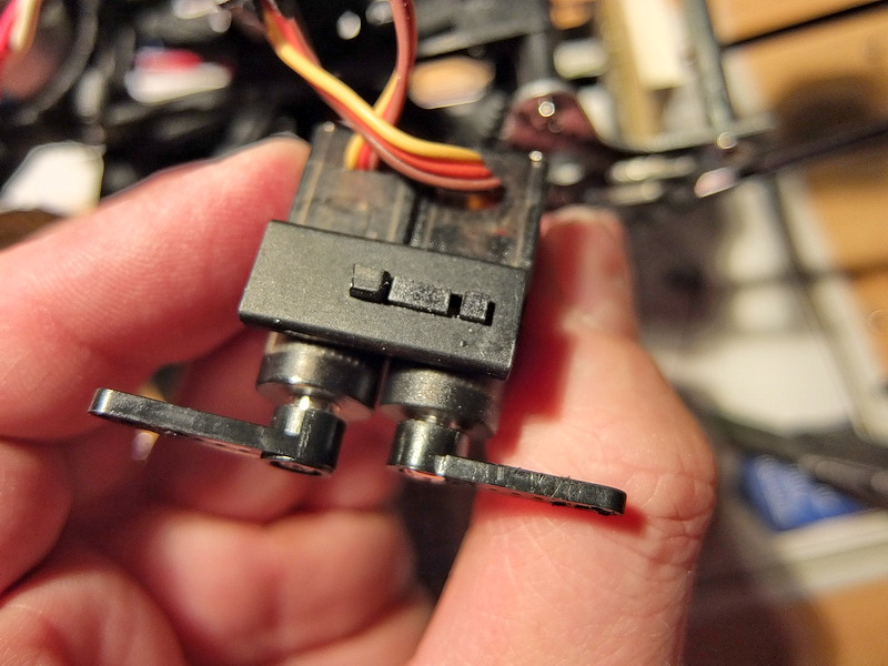 u kulového čepu serva které ovládá let vpřed a vzad. To samé platí pro bočení, když je FlyBar kolmo na